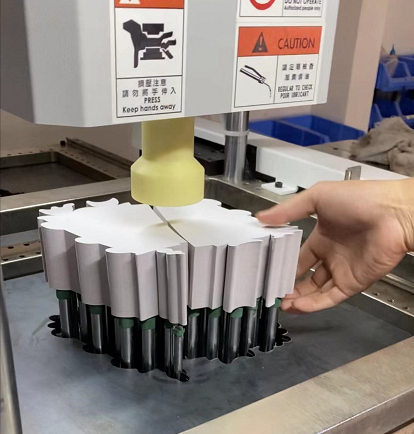 答:通用機(jī)型最大清廢尺寸是400*400mm,超出范圍需要定制非標(biāo)。我們的頂針頂部采用的是德國(guó)進(jìn)口的高彈棉頭,所以卡紙底部不會(huì)產(chǎn)生頂針的痕跡。